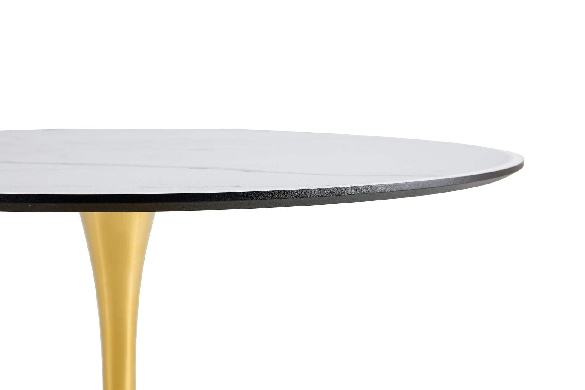 PRODUCT NAME: LIVING ROOM DINING TABLE-WHITE ROUND TABLE WITH GOLD LEGS 80CM IN DIAMETER.